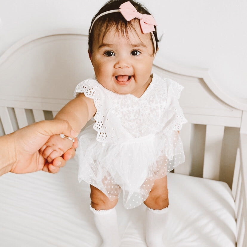 The sweetest headbands for babies and toddlers. Linen bows are attached to stretchy nude nylon bands that are super soft to ensure comfortable wear for newborns and beyond.